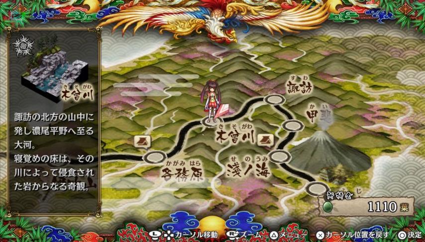D'entrée de jeu, on constate que God Wars fait dans le grand classique en matière de présentation. On amène la situation via des dialogues, puis on passe au combat, et on peut avancer vers la destination suivante sur la carte, où vous attendra (selon les cas) un combat, une phase de dialogue, ou un autel et un magasin (on reviendra là-dessus plus tard).