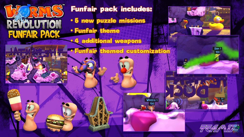 Worms ™ Revolution Funfair pack sera disponible le mercredi 24 Octobre et sera disponible sur le Playstation Store pour 4,99 €.
