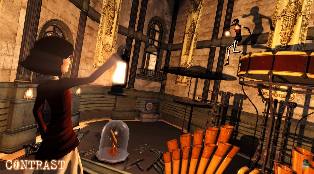 Dans Contrast, plongez dans un monde onirique et surréaliste des années 20, inspiré par le vaudeville et faisant souvent référence au film noir. Dans cet univers où se mêlent le jeu de scène, la magie, les intrigues et la tromperie, jouez le personnage de Dawn, l’ami imaginaire d’une petite fille nommée Didi. Les amis imaginaires des enfants sont toujours très spéciaux, et Dawn ne déroge pas à la règle. En effet, elle possède le pouvoir de passer de la réalité d’un décor, au monde parallèle des ombres qui lui est associé. Levez le voile sur une sombre histoire, en manipulant les sources de lumières de ce monde, pour déformer, agrandir, ou étirer les ombres du décor, éléments clés pour résoudre les nombreuses énigmes qui mettront votre cerveau à l’épreuve !