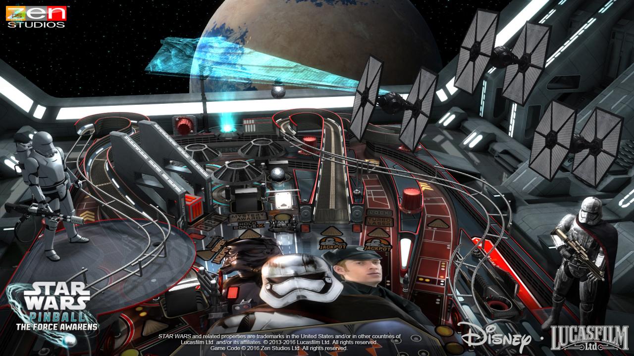 Rejoignez la Résistance et affrontez le Premier Ordre avec Rey, Finn, Poe, la Princesse Leia et Han Solo sur le plateau Star Wars Pinball: The Force Awakens !