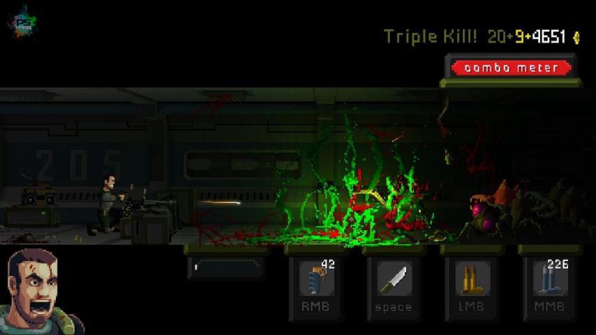 Vous incarnez Rock Gunar, un mercenaire avec du sang alien sur les mains. Une gâchette facile et des stratégies de bataille réfléchies vous aideront à affronter ce mode de survie ultime afin d'éliminer les aliens de ce vaisseau. Vous périrez (souvent) mais une force brute combinée à des munitions et améliorations d'arme géniales vous aideront à exterminer la vermine, une vague à la fois !