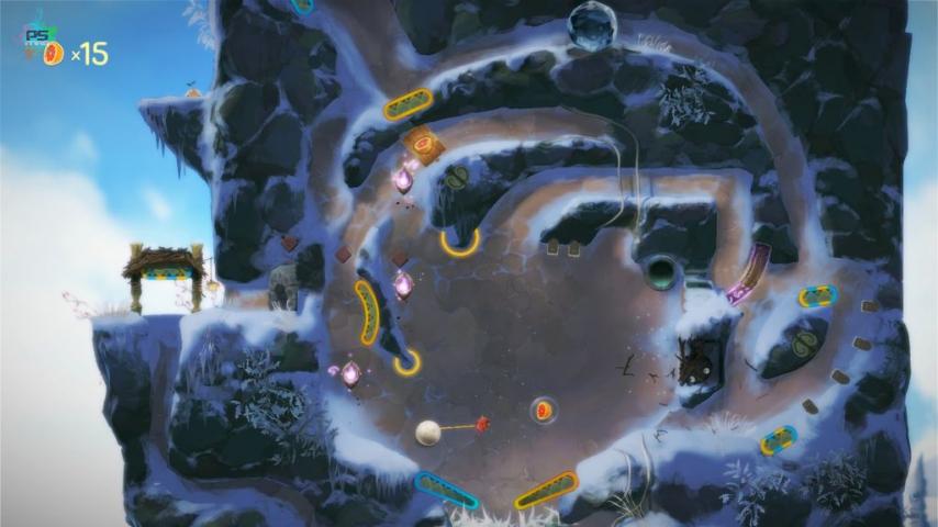 Le jeu est en effet relativement court et ce ne sont pas les phases de déplacement qui vous gêneront le plus. Celles-ci se résument en effet à se déplacer d'un point à un autre (Yoku ne peut même pas sauter) et, surtout, à lier entre elles les zones de la seconde moitié du gameplay : les zones de flipper ! Si on joue un bousier et sa boule, ce n'est en effet pas pour rien, tant Mokumana regorge de zones de ce genre, qui demanderont un peu de dextérité et de patience pour en venir à bout.