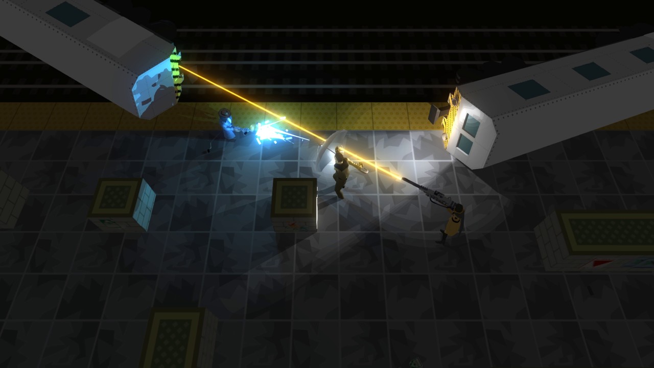 Le principe est simple: Dans ces mêmes zones d’ombre, personne ne peut vous voir si vous restez immobile ou si vous marchez. Vous non plus d’ailleurs et le seul moyen de vous repérer sera de cogner contre un mur, ce qui fera vibrer la manette. Ou alors vous pourrez courir, ce qui laissera une traînée de la couleur choisie par vos soins en début de match, appuyer sur la croix de la manette pour apercevoir une brève icône vous correspondant ou encore tirer, sachant que ces 3 options seront visibles également par les autres qui pourront de fait se lancer à votre poursuite.