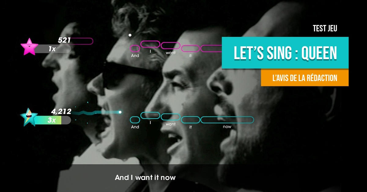 Un ordre d’idées se bouscule dans nos têtes au moment d’aborder cette nouvelle monture de Let’s Sing. Tout d’abord, il est clair que nous marchons sur des oeufs. Ainsi, si nous avons le malheur de dire du mal de Queen, nous n’imaginons pas le tollé provoqué. Une foule en colère, avec ReleaseForBurial et VDBK en tête, des bûchers et des potences en pleine installation. Par bonheur, sans nous déclarer “spécialistes purs et durs”, nous savons que la carrière du groupe mythique est sans équivoque : le mot “culte” n’est même plus un euphémisme. Juste une bassesse de bas esprit, tant l’apport musical et l’aura de la bande sont stratosphériques. Jusqu’à nous conduire au cinéma, où les fans absolus auront eu matière à dépecer la volonté d’exactitude. Mais d’un autre côté, le concept est aussi casse-gueule. De fait, lors de la sortie de SingStar (dont le concept a disparu) Queen sur Playstation 2 et 3, l’enthousiasme était un peu éteint. Pas assez de peps, pas assez de folie et finalement, pas assez d’esprit “made in Queen”. De quoi ouvrir la voie royale pour les développeurs qui résistent encore et toujours à l’envahisseur ? Il est temps de regarder cela de plus près.