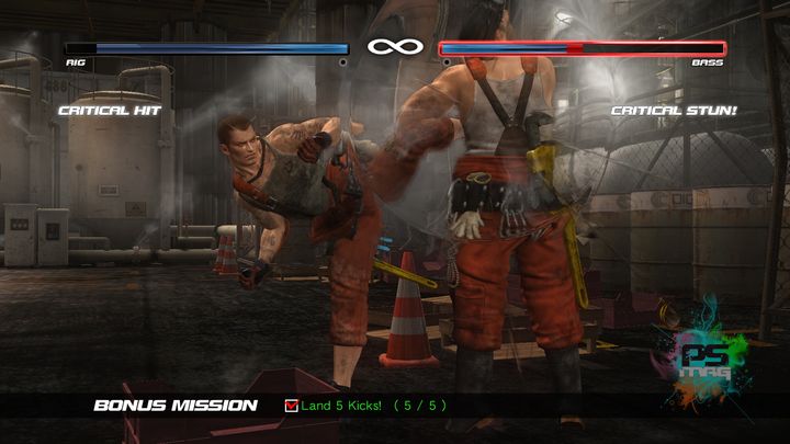 Mais le danger ne vient pas seulement du combattant qui vous fait face. Les arènes de combats sont aussi truffées de pièges appelées "zone de danger". Soulignons au passage que les environnements de combats, bien que moins soignés que les personnages, sont réussis dans leur ensemble. Concernant ces fameuses zones, il s’agit de déclencher une série de coups au bon endroit, ce qui aura pour effet de provoquer, entre autre, la chute de votre adversaire ou une explosion par exemple, qui l’amputera d’une bonne partie de sa barre de vie. Alors prudence. Une nouveauté (ah ? enfin !) de ce DoA5 est appelée la séquence cliffhanger - rien à voir avec le film d'action de Sly. Pour éviter de chuter en bord d'arène, le défenseur aura la possibilité de se rétablir tandis que l'attaquant tentera dans le même temps de vous projetez en contrebas, avec à la clé des dommages supplémentaires si la manoeuvre réussie. Une excellente idée, mais à nuancer car cette séquence n'est utilisable que sur très peu de niveaux. Au final, toutes ces composantes de gameplay, que vous soyez otaku du combo ou noob de la croix directionnelle, sont la promesse d’une confrontation nerveuse et dynamique en solo comme en tag.