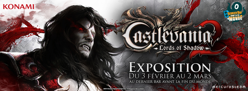 A l'approche du 27 février, date de sortie de Castlevania: Lords of Shadow 2, Konami s'est associé avec le Dernier Bar Avant la Fin du Monde (19 avenue Victoria - 75001 Paris) pour proposer aux fans de la série une exposition dédiée aux visuels de développement du jeu. Du 3 février au 2 mars 2014, ce sont au total 27 œuvres tirées de l’imaginaire du jeu et produites avec la participation de la Galerie Aoji.fr qui seront présentées : personnages, environnements, storyboards et autres sketchs réalisés par l’équipe de MercurySteam.