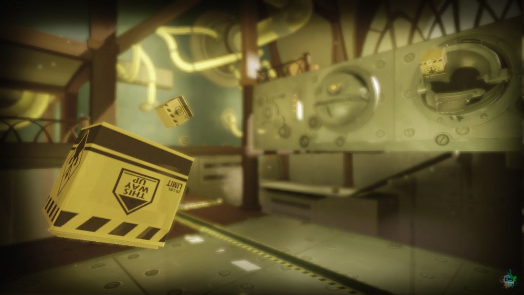 Un long parcours attend donc le joueur qui devra résoudre de nombreuses énigmes pendant lesquelles il pourra compter sur les conseils de son oncle qui le guide via le système de haut-parleurs et sur l'équipement principal du joueur, le gant IDS, permettant de jouer avec quatre dimensions au sein desquelles la physique se retrouve altérée. Didacticiel oblige comme dans tous les jeux aujourd'hui, on maîtrise progressivement les dimensions et leur effet. La 1ère débloquée est la Plume, où les objets deviennent léger.. comme une plume, permettant alors à notre héros de manipuler aisément des objets contendants, ce qui permettra d'activer de nombreux levier. On débloquera ensuite la dimension Plomb, qui fera l'inverse de la première, mais je ne vais pas tout vous révéler. Pour l'instant, rien de très compliqué. Mais petit à petit, le jeu nous résiste avec l'ajout des 2 autres dimensions restantes. On prend d'ailleurs un réel plaisir à imaginer la solution des différents problèmes et il faut reconnaître une bonne dose de délire dans certains des puzzles soumis à notre sagacité. Mais après, on passe alors d'un puzzle enfantin à une énigme prise de tête, ce qui risque de faire abandonner le jeu pour certains, et d'autres de se creuser les méninges au maximum.