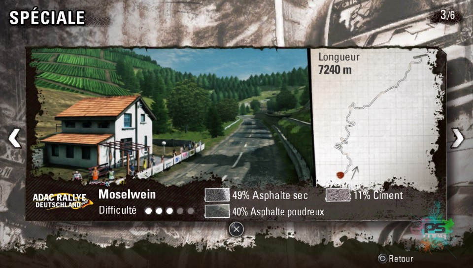 Nous devons donc nous rabattre sur les classiques Spéciale Unique avec un total de 6 pays ayant pour chacun 6 parcours ce qui fait un total de 36 circuits (moins que la version PS3 d'origine également). Un mode idéal pour améliorer son temps sur un parcours en question et être prêt pour le Rallye Unique et surtout le Championnat qui est certainement le mode le plus intéressant avec la possibilité de le personnaliser complètement.